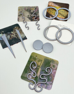 This collection features a diverse array of handmade jewelry and photographic artwork. Offerings include enamel earrings, cast silver and bronze pieces, and unique chains crafted from a variety of materials. Also available are cyanotype prints created from original film photographs. The collection includes a range of price points, with affordable options such as brass jewelry.