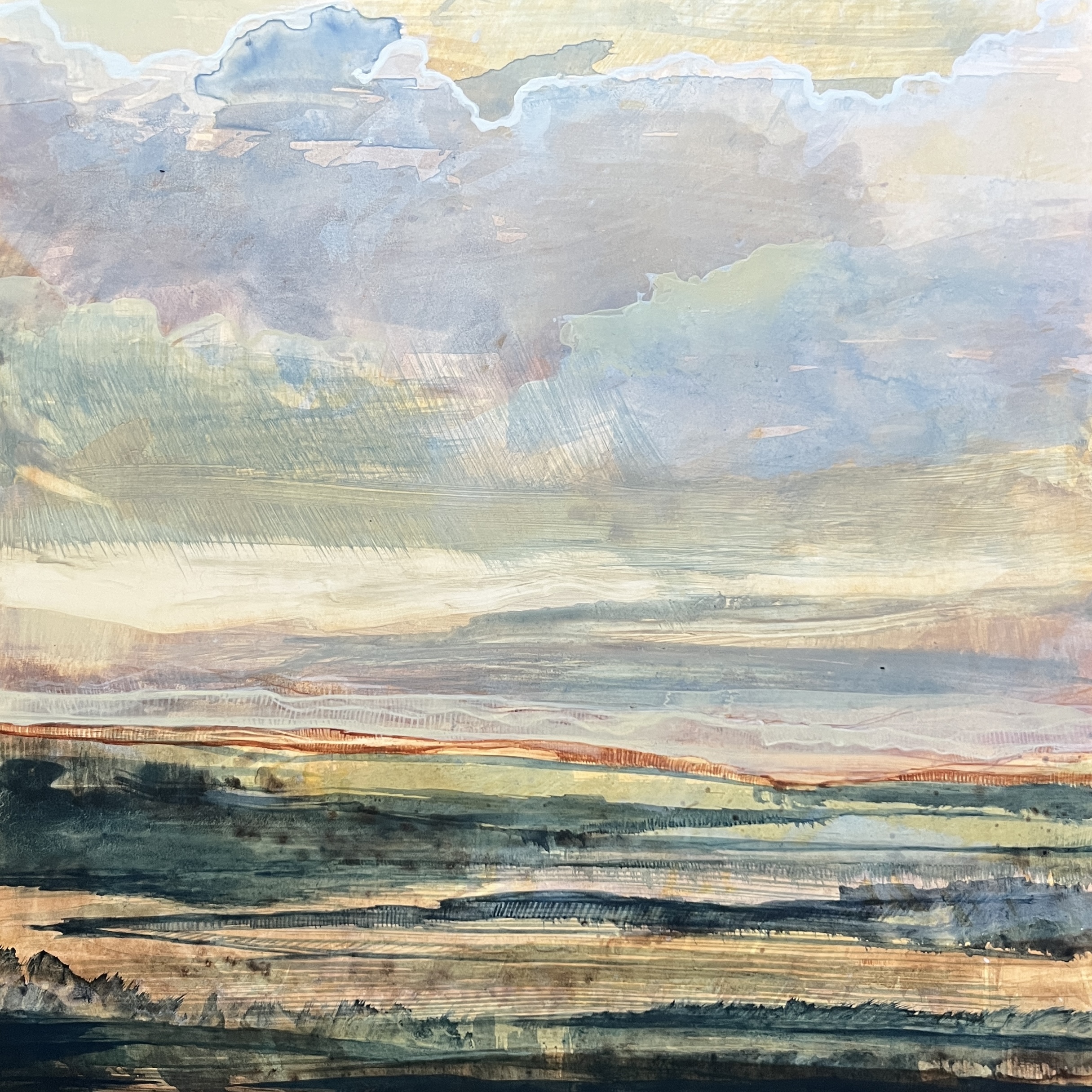 Caroline Adams is a painter and printmaker her work is abstracted landscapes in oil, egg tempera, and monotype on canvas, board and paper, drawn from my imagination and memory.