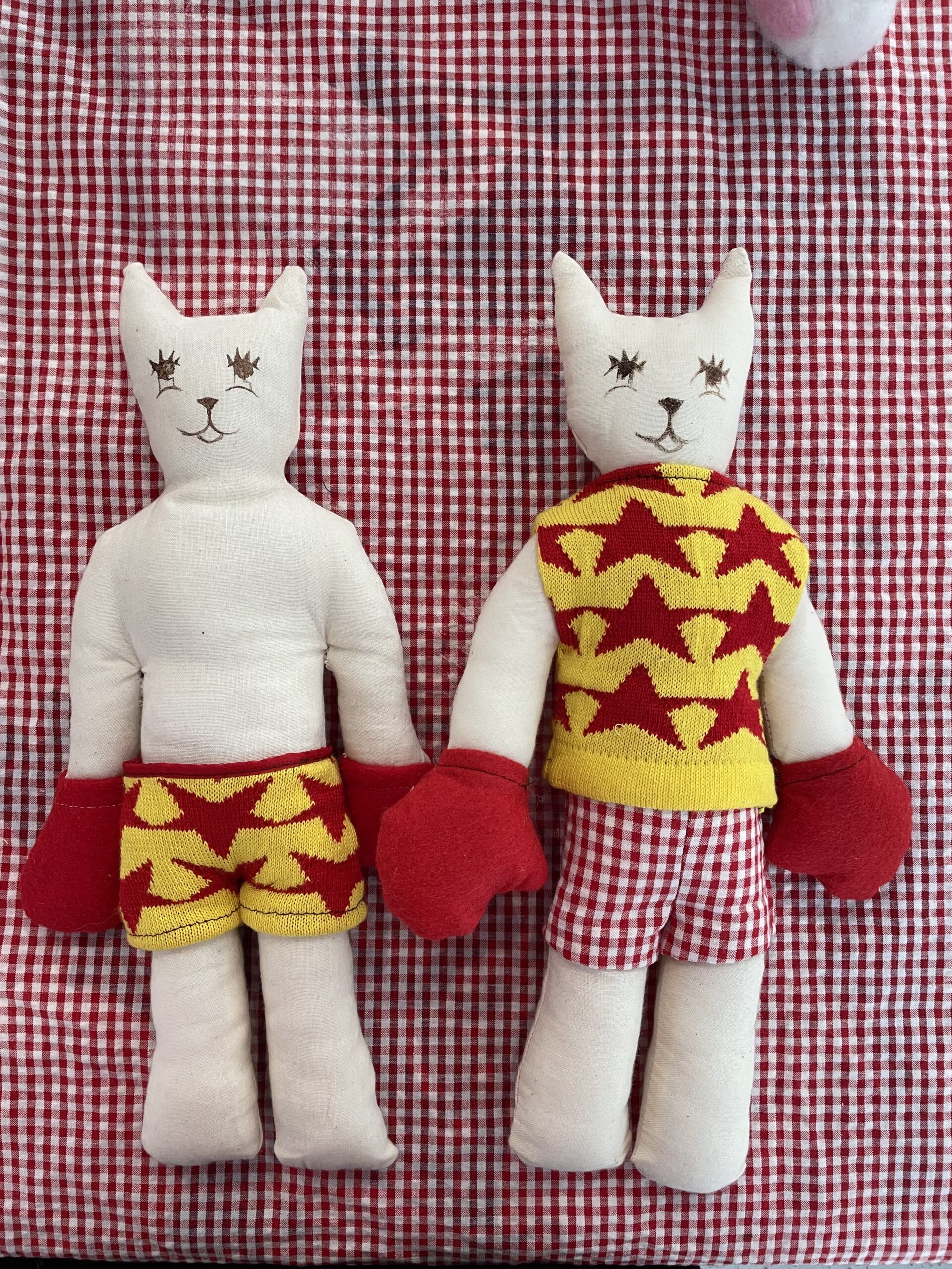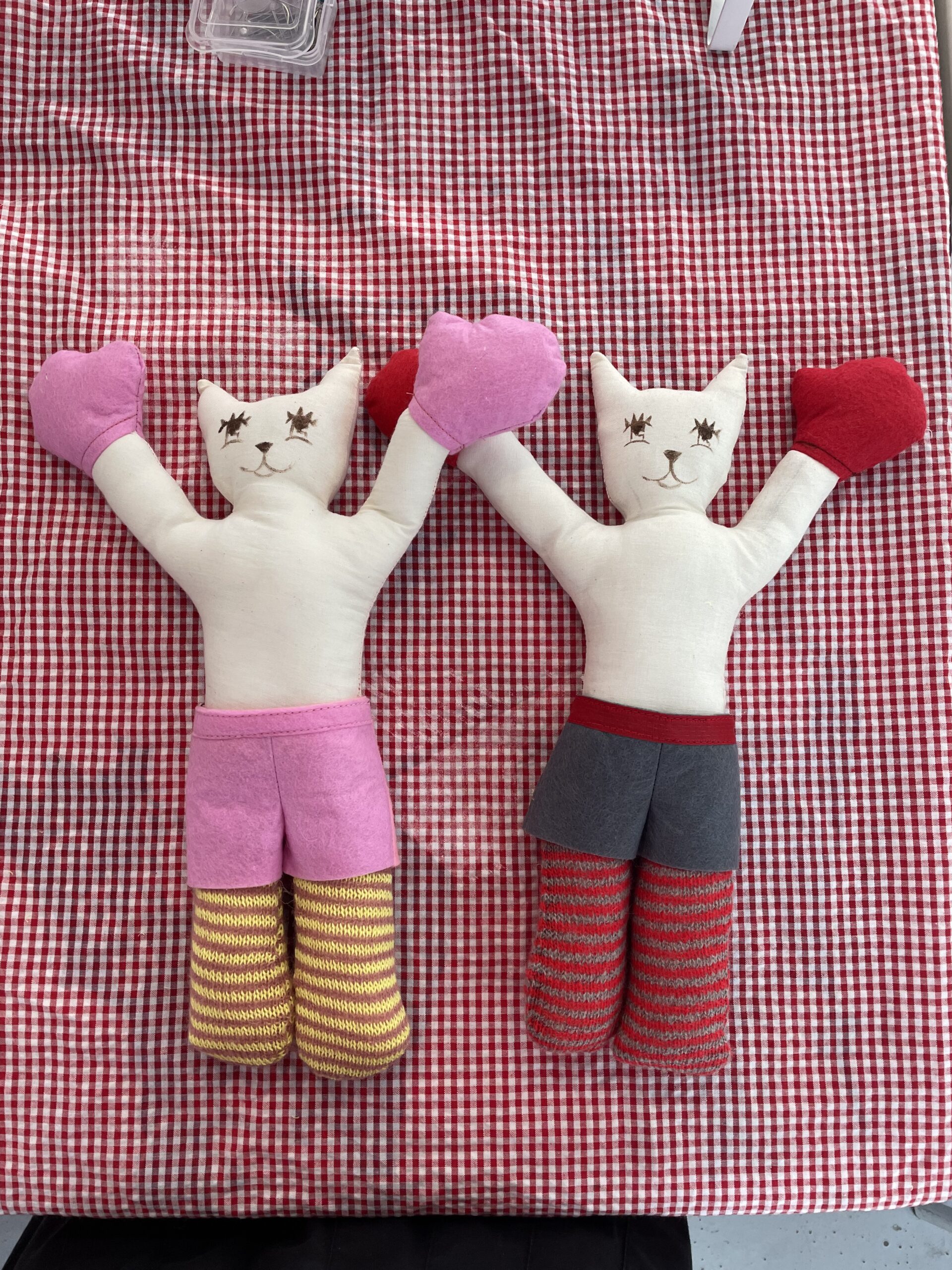 From Dhirey’s process of transforming the things that she loves into humorous and lovable plushies, her line of “Cat Fight!” is thus born. Taking inspiration from the world of Latin American freestyle wrestling and her cats at home that have been rustling some furs with each other, she combined them into a playful and colorful line of wrestling cats where people can choose their own plushie cat fighter that best represents them and see whose claws come in first.