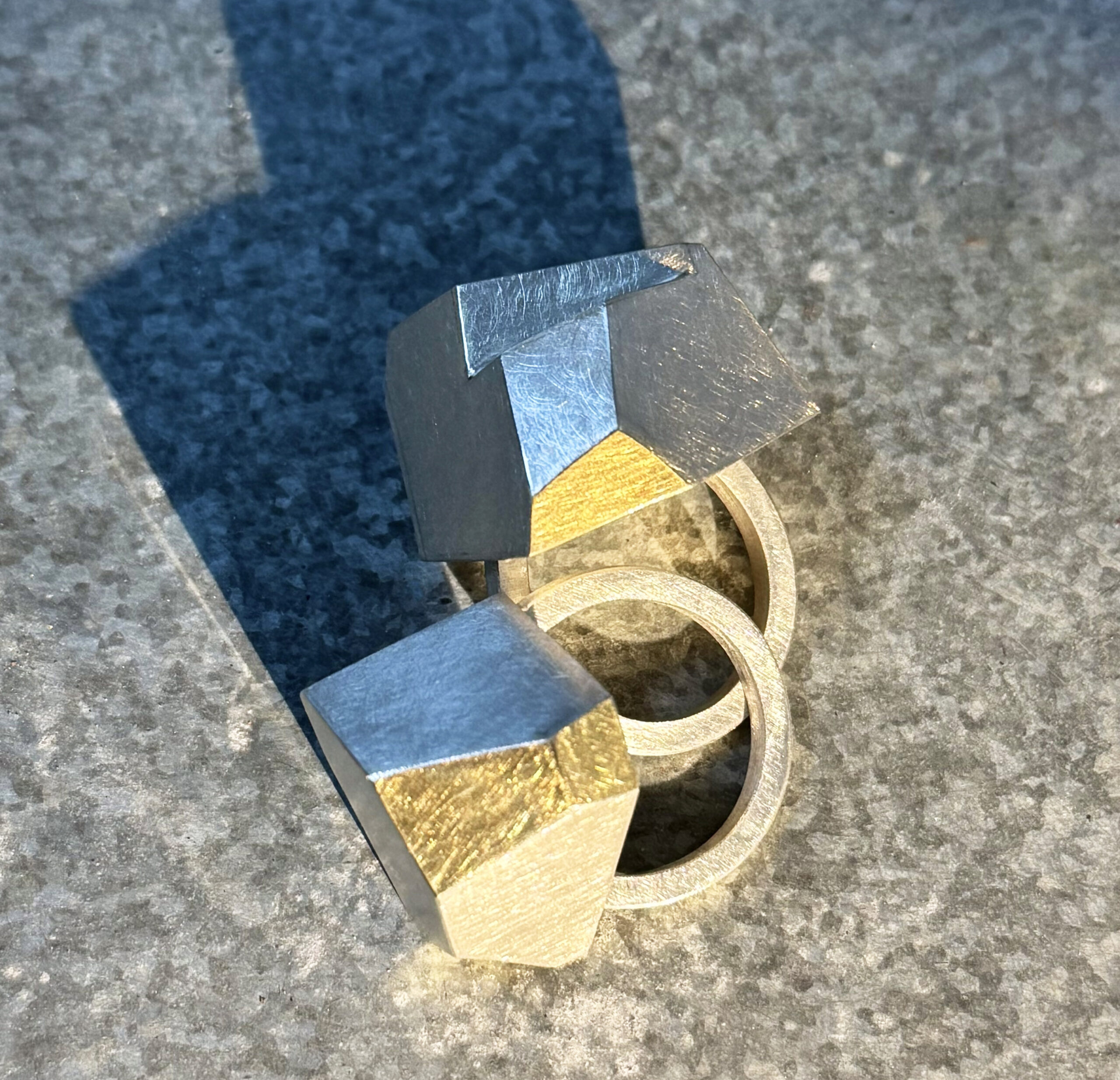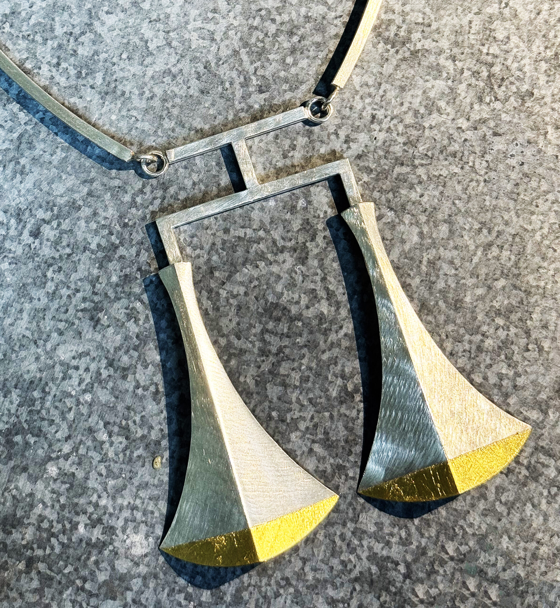 Suydam seeks out the minimal, the archetypal and the iconic expression of form, distilling it to its essence: the spirit, the balance, the elemental. Drawn to ancient architecture and volume, she hand fabricates hollow constructions from sterling silver and gold sheet.