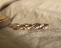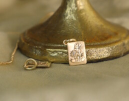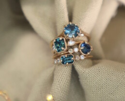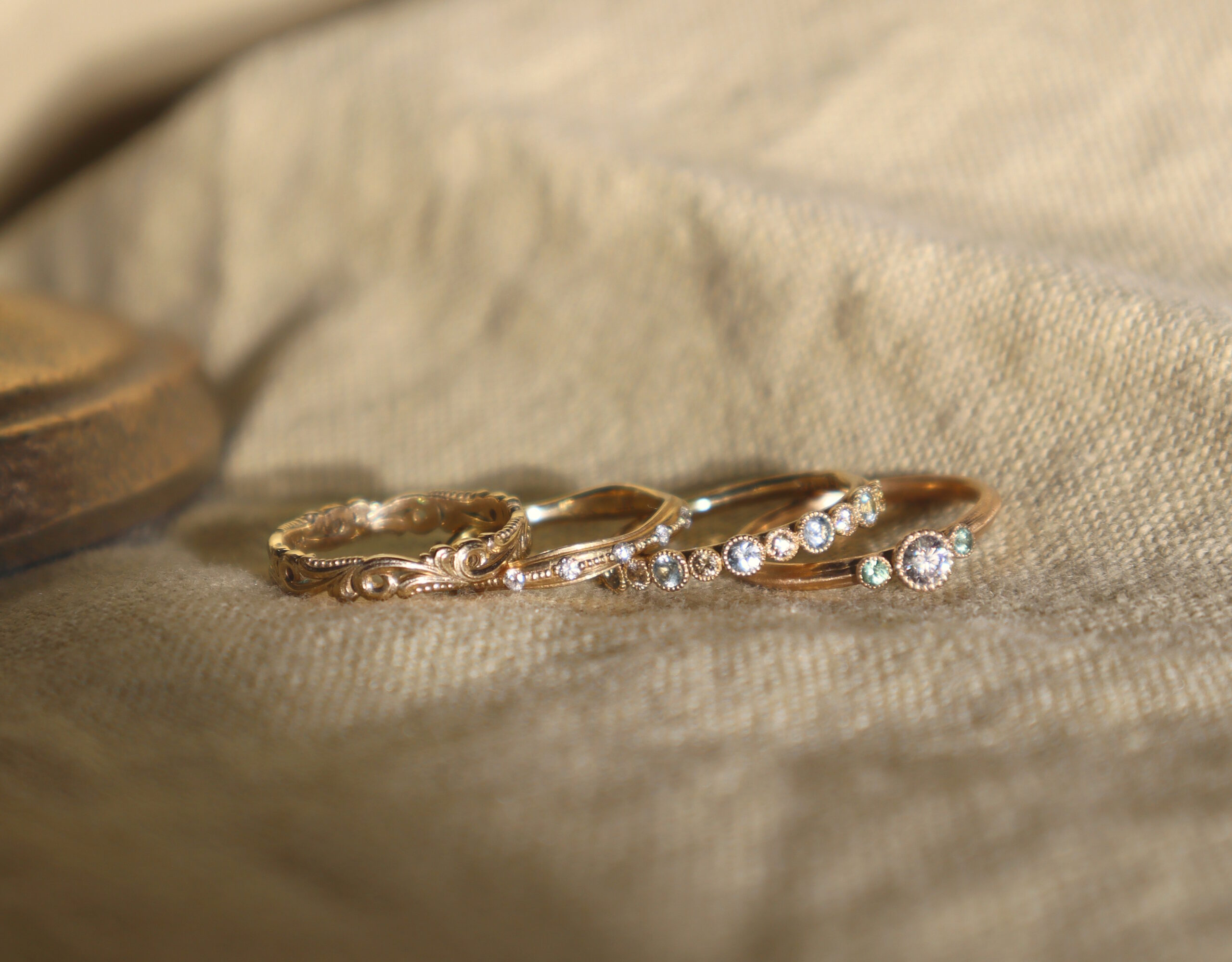 I design and create jewelry in 14k yellow gold, using traditional tools like a beading tool to add texture and detail by hand. My pieces often feature a mix of matte and polished finishes, creating a quiet contrast that reflects the feel of nature, soft, worn, and full of depth. I work with natural gemstones like Montana sapphires, drawing inspiration from vintage design and the natural world. One of my ongoing collections is a series of botanical-inspired miniature Golden Seed Packets. These tiny pieces are made to hold meaning, stories of blooming, growing, and transformation.