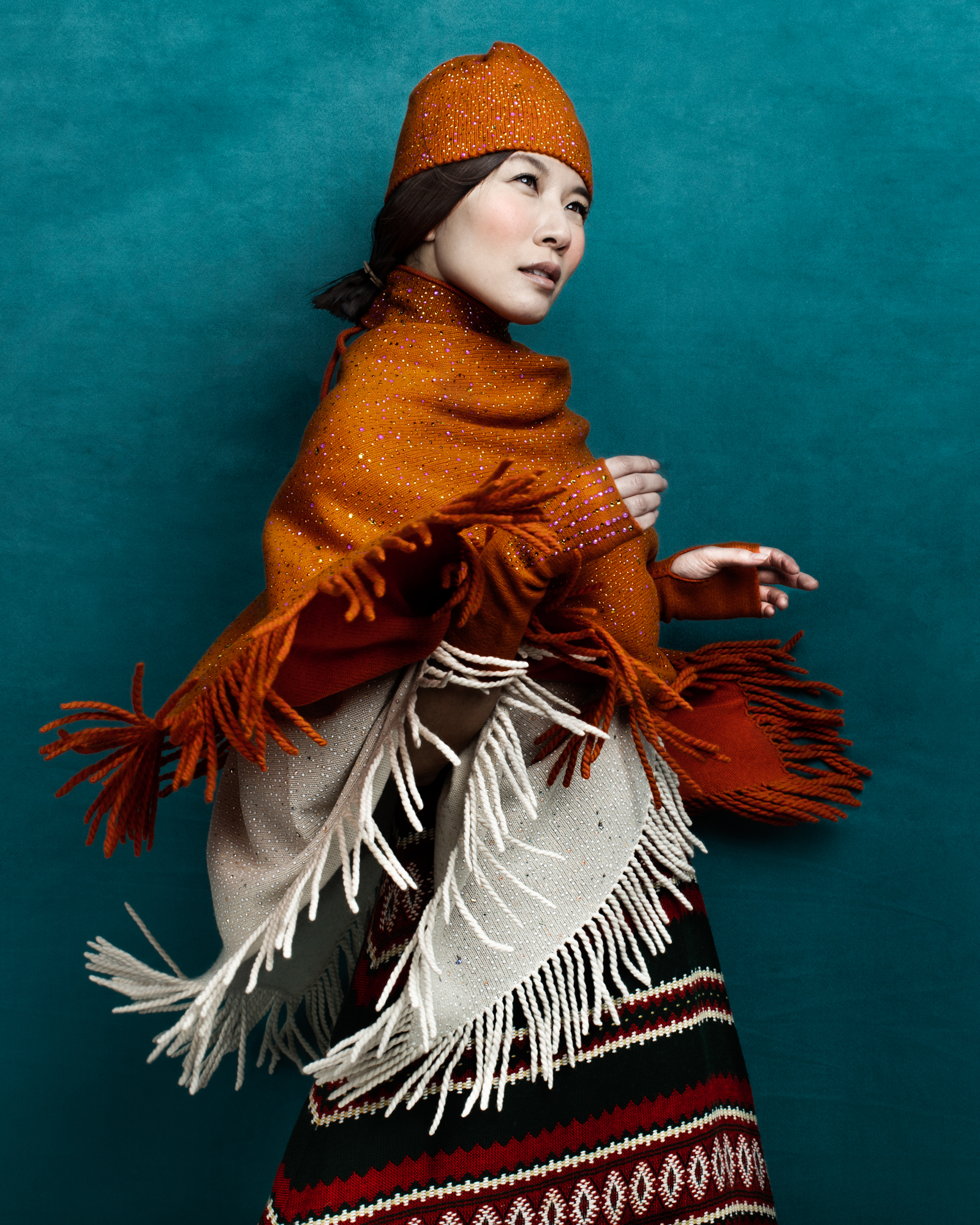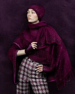 I make fine knit accessories – hats, scarves, and fingerless gloves. I find the best materials I can, because they’re worth it and they last, and make the work by hand where I live because it’s better for the work and better for my neighborhood. I love to mix yarns, to play with colors and patterns, and to make them all explode a little bit with some sparkle and gleam. Cashmere gives beauty, warmth and durability; Swarovski crystals activate the surface, adding depth and motion. I try to make my pieces special to be near, like reuniting people with their long-lost favorite thing.