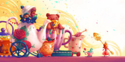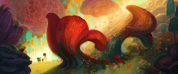 A collection of prints from Enya Zheng’s work in illustration and visual development. Her work focuses on colour and light through painting, to create fantastical scenes or colourful landscapes, and ranges from moody to whimsical.