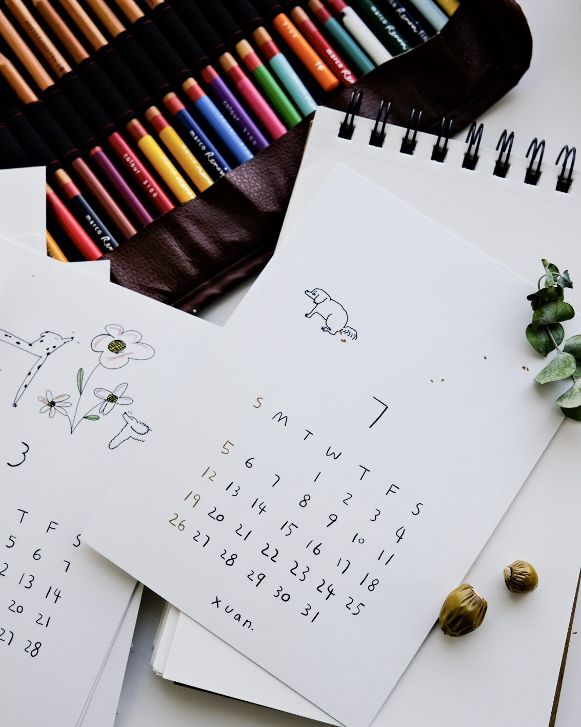 Accompanying the calendar is an expanded collection of super cute stickers and nature prints, all hand illustrated by Xuan. This series broadens the artistic scope to include curious cats, lush flowers and plants, and comforting foods. Each piece is crafted to bring a touch of warmth and personality to your journals, laptops, and living spaces.
