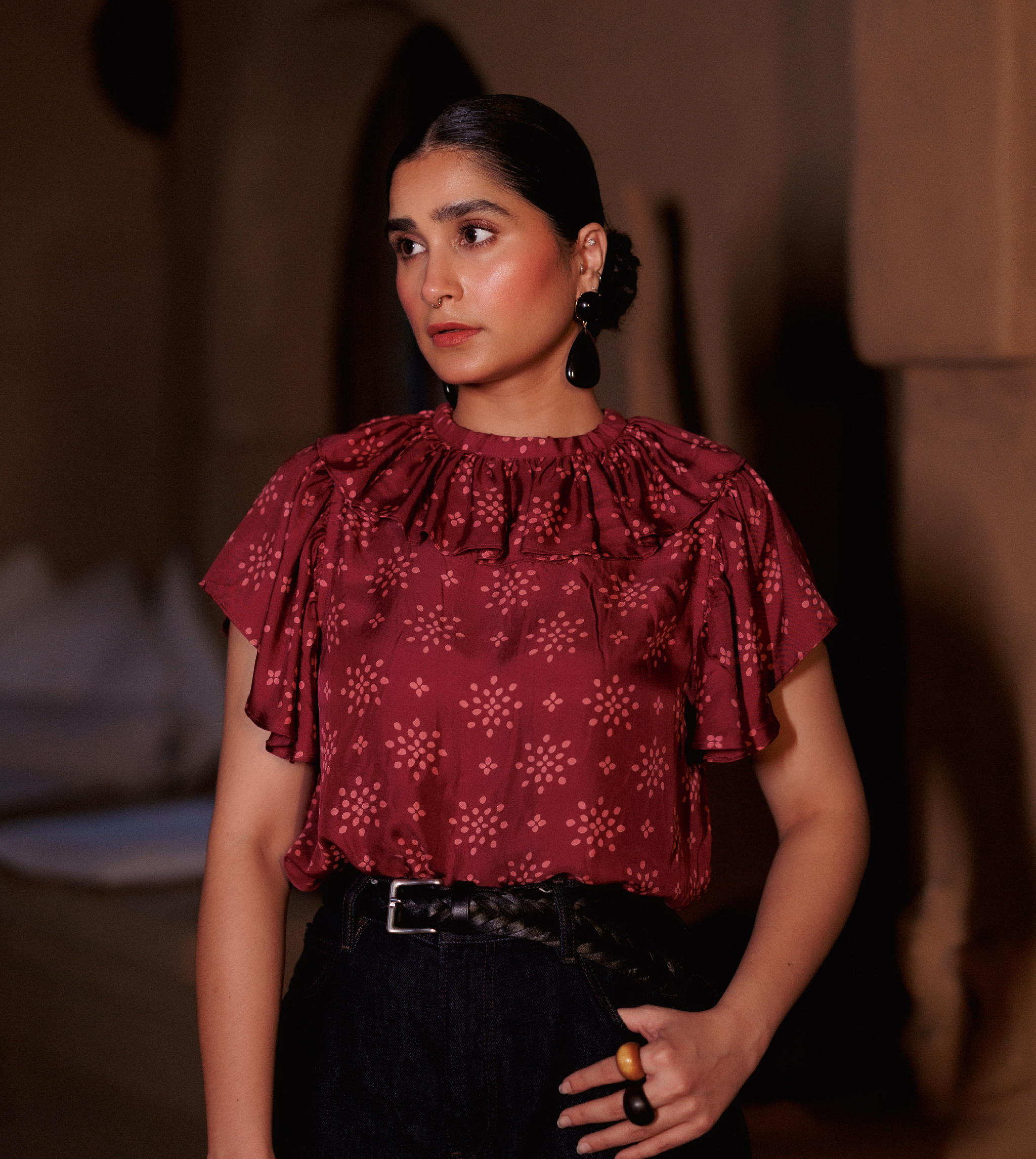 The design process at Harkoi is deeply artistic, beginning with hand-drawn sketches, stamping, paper cutting, and painting before being digitized for production. Each fabric is meticulously developed in collaboration with skilled weavers, printers, and tailors across India, ensuring that every garment is a true labor of love.