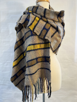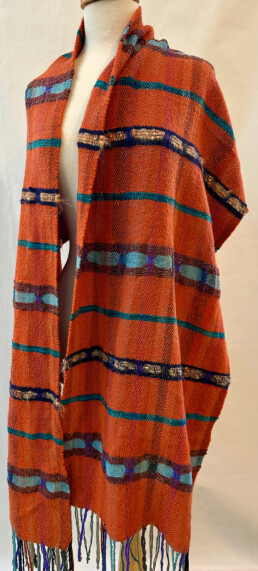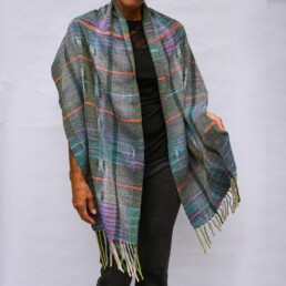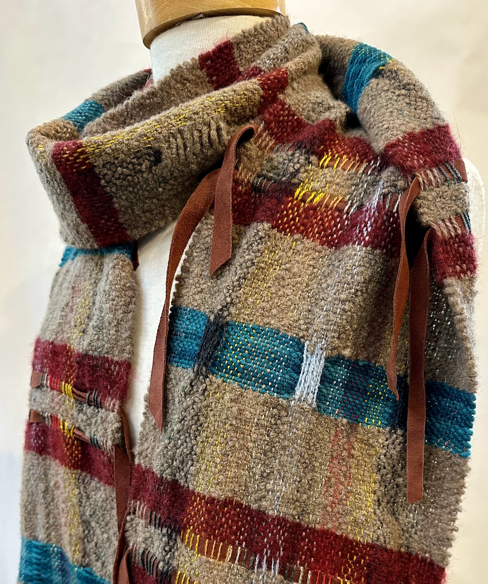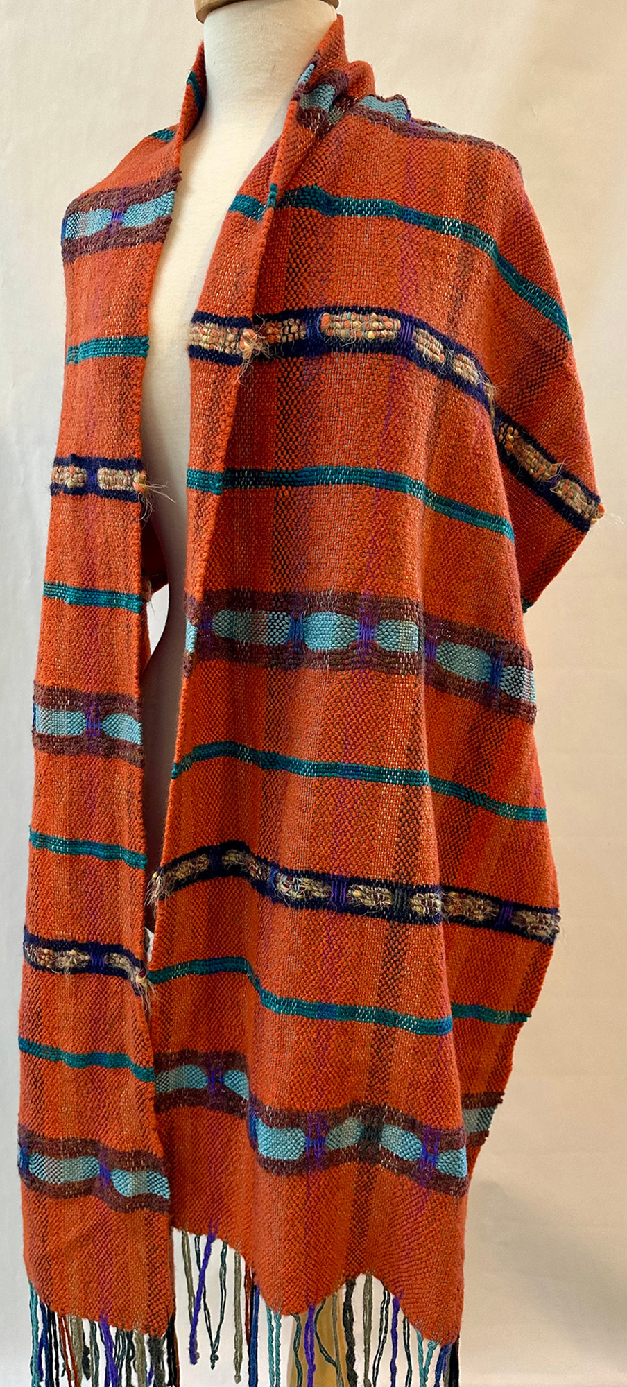 I design, draft and hand weave innovative, contemporary textiles on a 10 harness floor loom. A sculptural quality with multiple layers and unique textures is achieved by incorporating inventive weave structures. Each piece is reversible with subtle design details and patterns. All textiles are one a kind, woven with colorful sustainable fibers including soft, buttery cashmere, organic wools, merino wool, alpaca, silk, linen and bamboo. My aesthetic is COLOR and to create beautiful art to wear textiles that can be worn by all. I love color combining fibers to produce luxurious woven accessories that pursue elegance, creativity and classic craftsmanship.