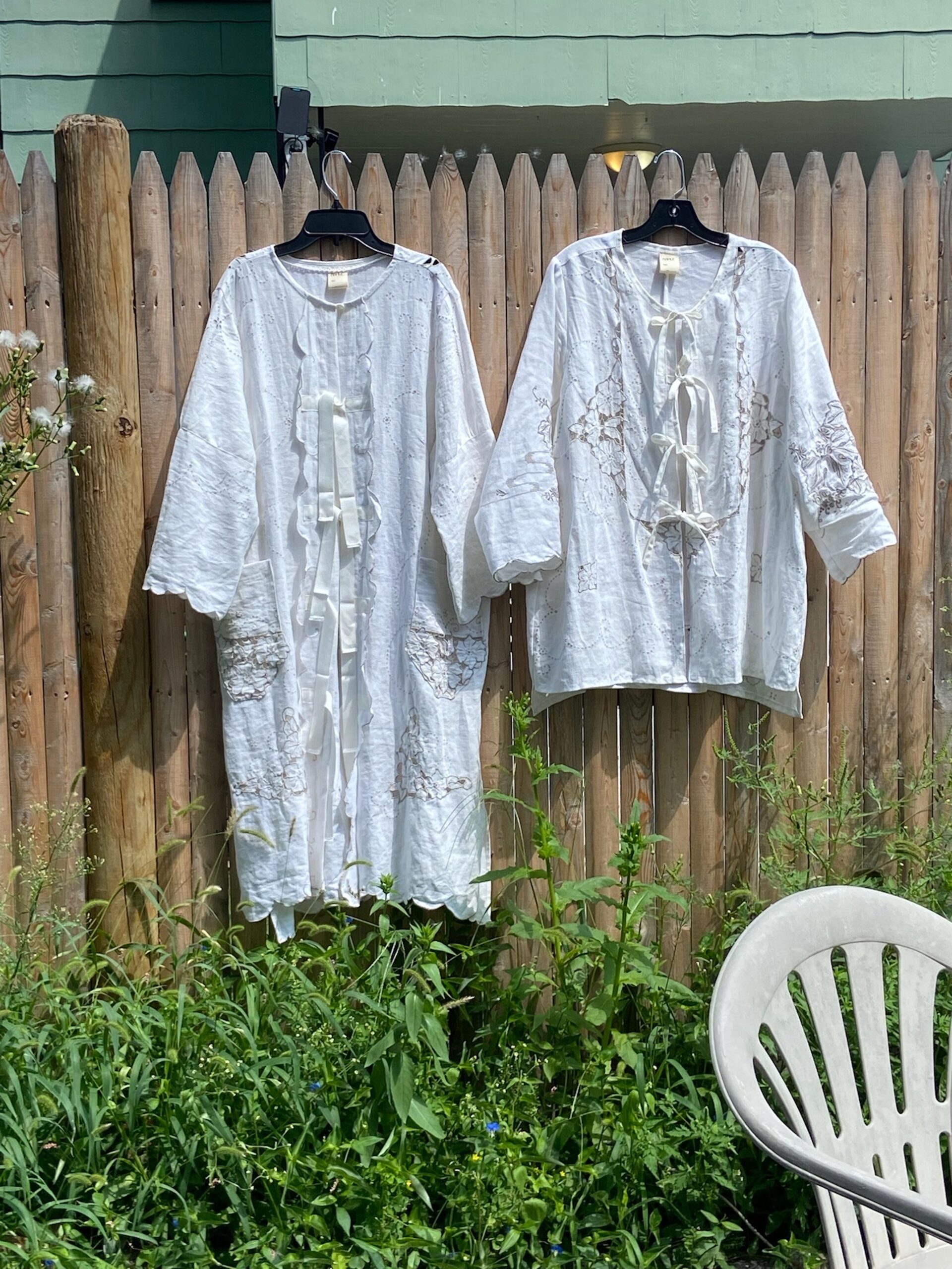 Through her clothing brand, KAHLE STUDIO, Mary reimagines the relationship between textiles, garments, and the human form. Each piece is designed with adaptability and inclusivity in mind, offering multiple ways to wear and express oneself. She is committed to sustainability, often working with antique, deadstock, or upcycled textiles and trims. Every item is meticulously handmade, either by the artist herself or in collaboration with skilled craftspeople across the USA, reflecting a dedication to thoughtful design and the preservation of artisanal traditions.