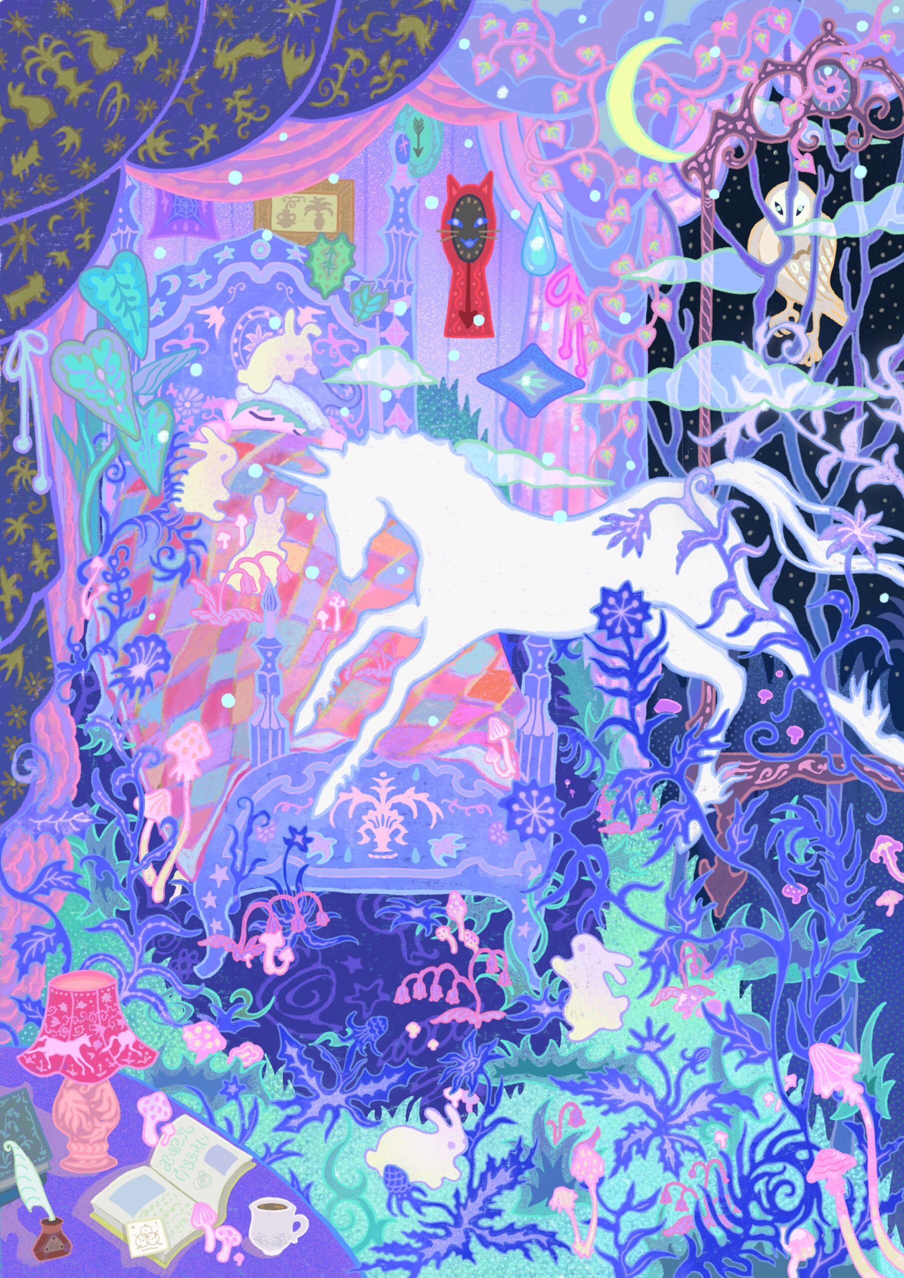 Lucky Strikes the Star! is a illustration and printing based small business founded by two recent alumni. Lucky Strikes the Star! focuses on making high quality illustration and printmaking prints(including digital art, silkscreen printing, linoleum) that focuses on dreams, daily angst, self-expression, and human emotions.