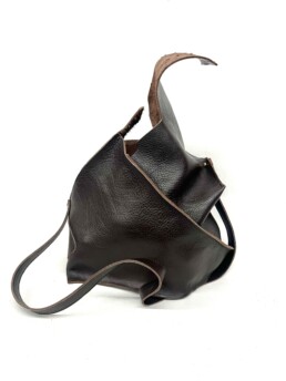 Lunchbreak Bags are one-off designs made from vegetable tanned cow hides. The leather used in the bags is scrap from a handbag factory in Providence RI, containing scars, tick bites, clamp marks from the stretching process, uneven pebble and other characteristics which deem a section of the hide unusable for commercial applications. The artist currently works as the cutter in the handbag factory but started out in assembly and has received free range to use other machines in the shop for personal projects during lunch break and after hours.