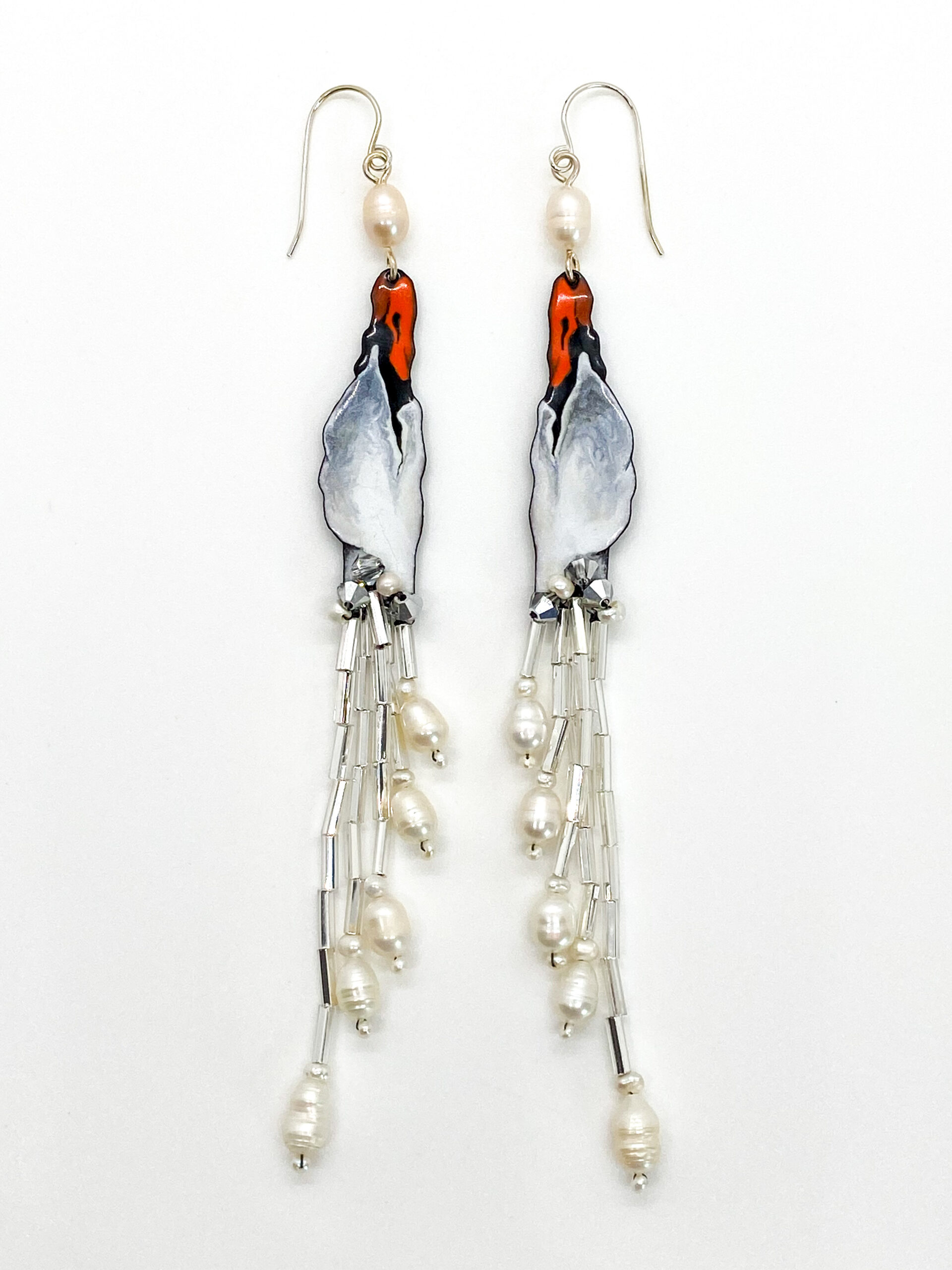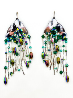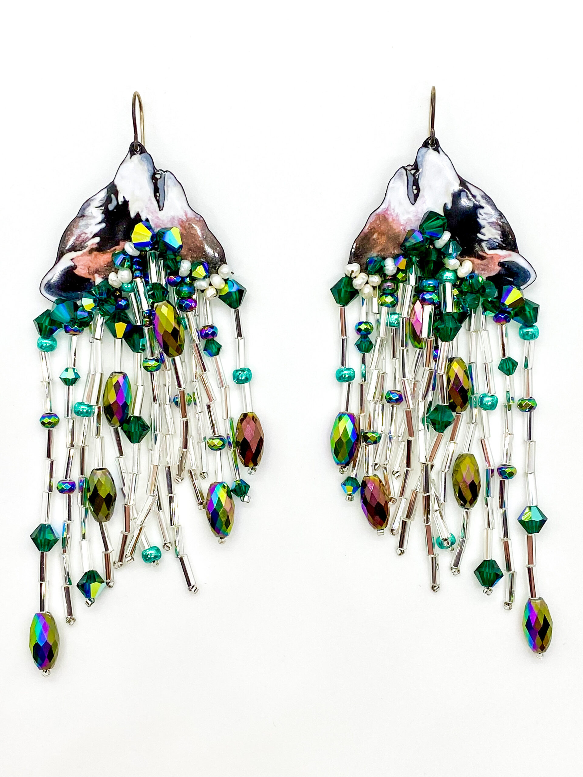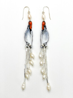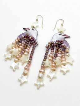 Once out of the kiln, she hand-strings each enameled piece using an array of beads and pearls that transform the physical morbidness of death into something eye-catching and enticing, while also nodding to cemetery immortelles and peoples’ never-ending plight of coping with loss and their own impending death. While her jewelry can be seen as tokens of remembrance, it’s also a reminder for the wearer that in life, there is a balance between all things and that to step into the light, you have to move through the shadows.