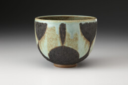 Melissa Bland creates functional, wheel-thrown pottery in dark stoneware. The interplay of surface pattern and texture are a central focus. Patterns inherently repeat, but she seeks patterns that subvert expectation, reflecting life’s unpredictability and instability.