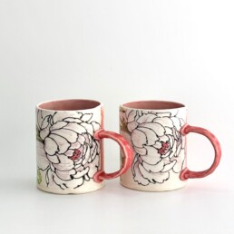 Drawing on her love of natural forms, Christine uses her illustrative skills to hand paint transfers for her red and white stoneware mugs, vases, plates and other functional ware and porcelain jewelry.