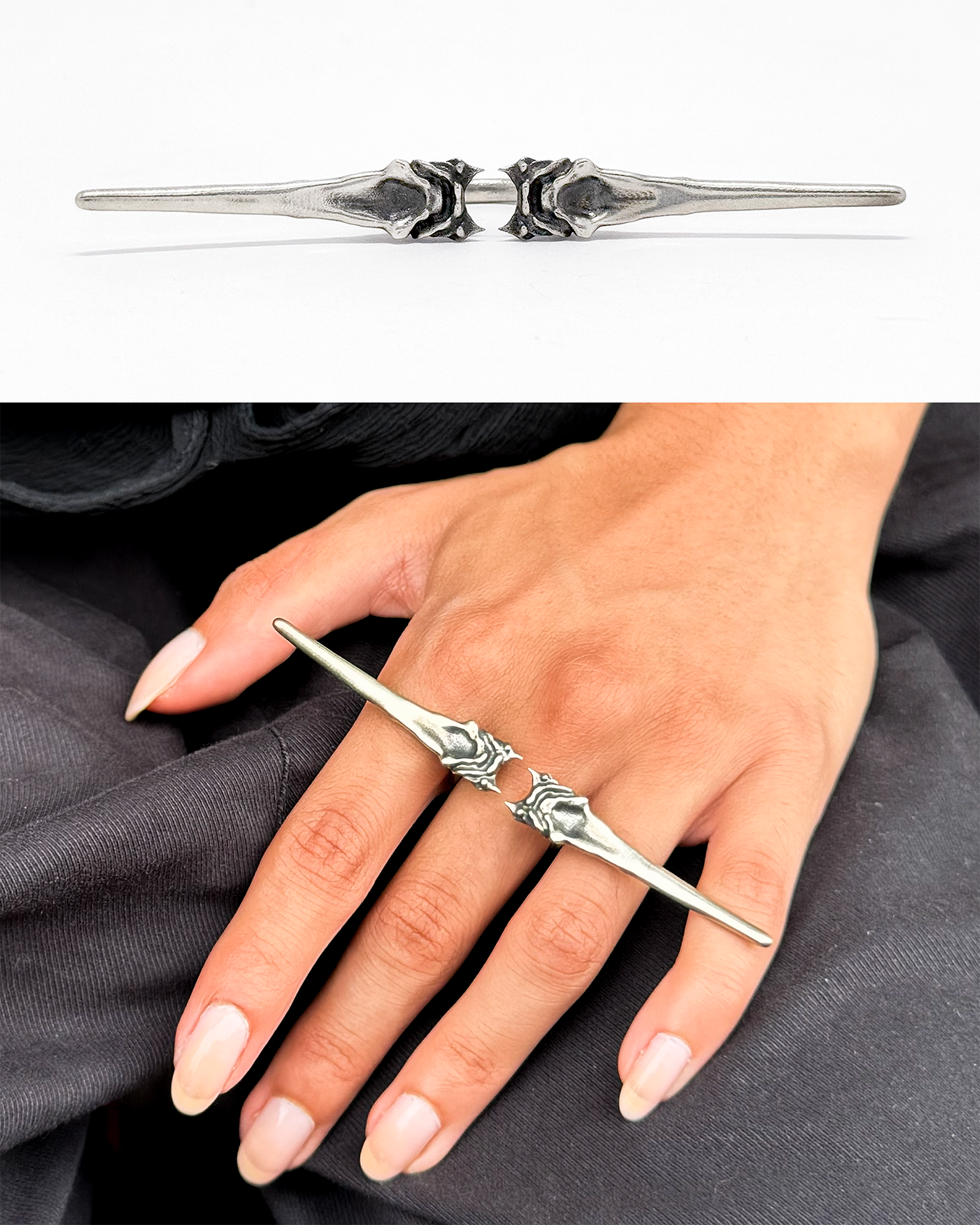 S.MARENKO is an independent brand by designer Sophia Ponomarenko, currently based in Providence, Rhode Island. Graduating from RISD in 2025 with a BFA in Industrial Design, she aims to balance the learned methodologies from her education with more conceptual and sculptural approaches as she focuses on jewelry and accessory design. S.MARENKO addresses the relationship between body and adornment – it’s an interrogation of what it means to adorn oneself – a conversation between maker, object, wearer, and observer. The objects created become materializations of Ponomarenko’s explorations and experiences concerning dualism, expressed through the composition of material, process, form, and texture. Every piece is intended to become an extension of its user, pushing its tangible purpose into the metaphysical and extending our identity and physical form.