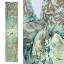 Working with natural dyeing and eco-printing techniques, Sasha Azbel, the director of Sashoonya, crafts silk scarves, wall hangings, clothing, and home goods. She never employ toxic chemicals in our art. Aww dyes her textiles with home-grown plant extracts, and carefully foraged macro-algae, (seaweed). Sasha never uses pesticides, herbicides, or synthetic fertilizer on her plants, only compost.