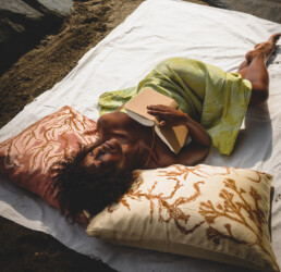 Her textile goods, infused with the colors and the essence of the landscapes we cherish, are talismans and symbols of a world that prospers through care and connectivity. Her belief is that our identities are interlinked with our natural world, and that textiles are an important mechanism for communicating and nurturing this connection.