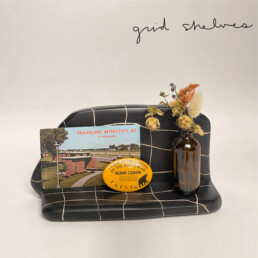 Shannon Rose Studio creates handmade small-batch home goods and furniture objects in her studio in Brooklyn, New York. Current work includes relief prints, carved wood shelves, turned wood candle holders, heart shaped stools, and powder coated steel shelves designed to hold postcards and assorted ephemera. Her work is generally playful and whimsical, and is broadly inspired by her experience growing up around the landscape, vernacular design, and folk art of the American midwest.