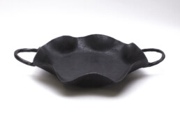 Besides giving the pans that rich dark color, these carbon steel pans are fully functional. They come ready to cook or bake in, easy to maintain and clean up, and also lend themselves to a gorgeous serving presentation. No two pieces are exactly alike in form and texture, as well as character. Viewers/clients respond to having subtle choices and finding that very special one.
