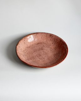 Turning to a strictly natural mineral-based palette, she draws inspiration from earthy pigments in the landscape and architecture that have been weathered from human touch and nature over time, such as frescoes, the patinated facades of brownstone and marble buildings in her neighborhood, or the look of rain glossing over a slate sidewalk. By applying glazes with deliberate restraint, Peters allows the clay grog to surface, prioritizing the raw beauty of the earth over mere ornamentation.