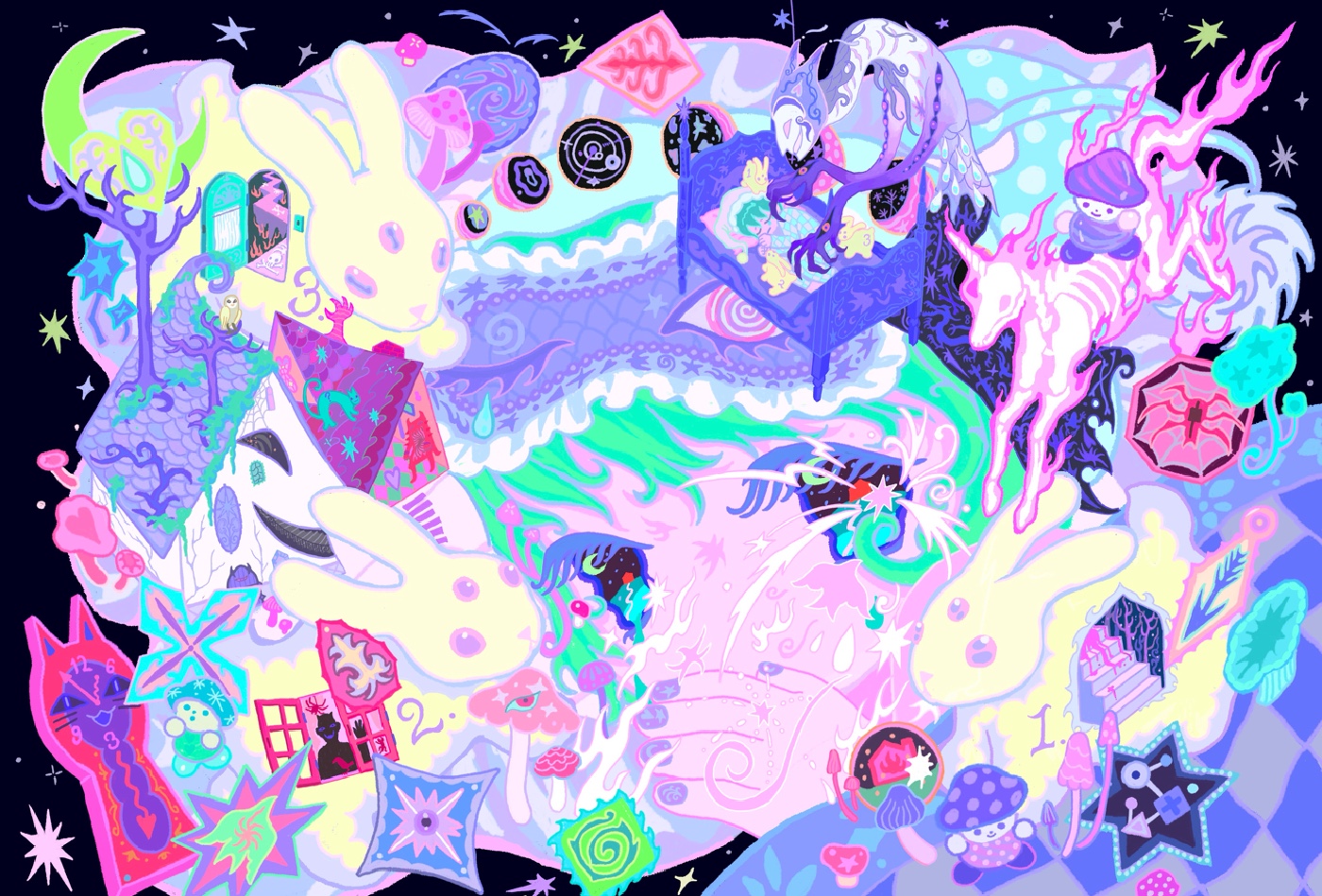 Sitong Liu is an illustrator and designer based in Brooklyn, New York. Her work grows from an interest in mythical creatures, dreamlike spaces, and the quiet emotions that are often hard to name. She uses these images as a way to explore softness, imagination, and the feeling of not fully belonging.